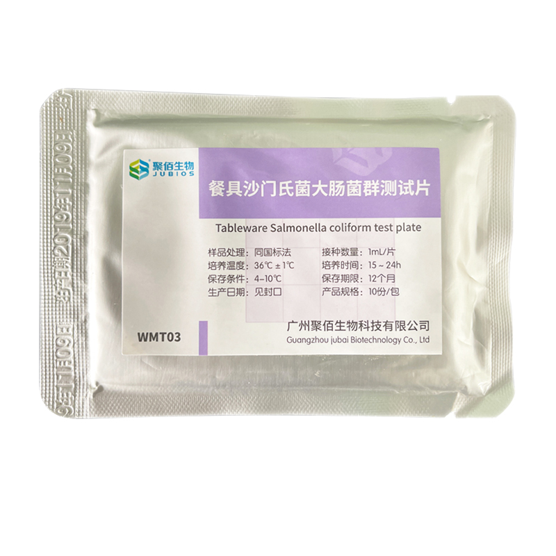 大腸菌群多存在于溫血動物糞便、人類經常活動的場所以及有糞便污染的地方,用大腸菌群數作為餐具消毒效果的監測指標,具有很好的代表性和很高的靈敏度。沙門氏菌沙門氏菌屬腸道細菌科,包括那些引起食物中毒、導致腸胃炎、傷寒和副傷寒的細菌。在GB14934-2016中要求消毒餐飲具不得檢出大腸菌群和沙門氏菌。本產品結合大腸菌群和沙門氏菌的特異性酶代謝特點,設計針對兩者的顯色底物,結合高分子吸水凝膠、促進劑等形成具有高選擇性的培養基,運用微生物測試片專有技術,做成一次性快速檢驗產品,一步培養16-24h就可確認檢測結果,非常適合各級檢驗部門和食品企業使用。