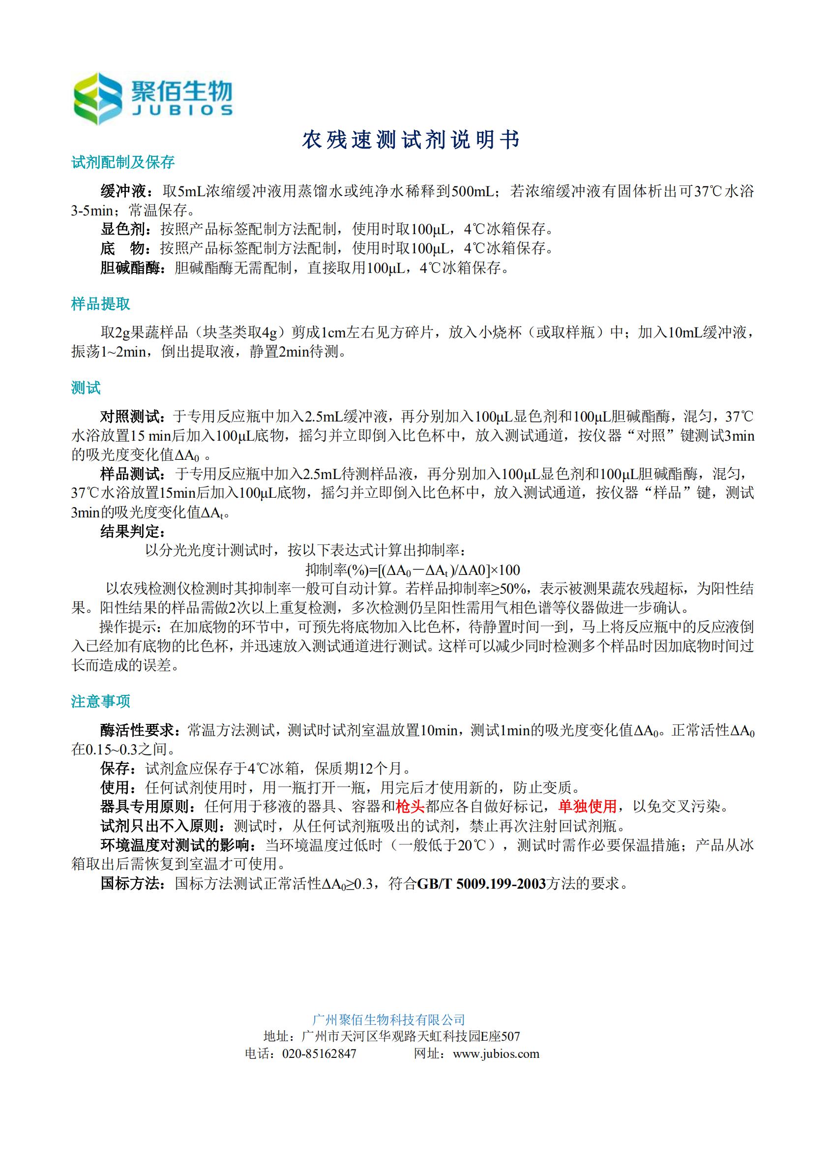 用于蔬菜,水果中有機磷和氨基酸酯類農藥的快速檢測